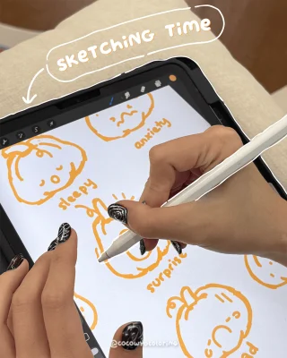 Sketching time means letting ideas flow. We test out expressions, play with simple lines and see which pumpkin mood fits the story best.
