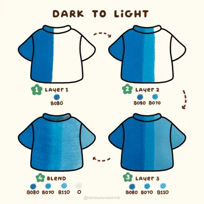 5. Blend Again: Blend dark to medium with your medium marker, then blend medium to light with the light marker.
